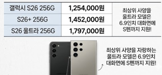1. 갤럭시 S26 시리즈 모델별 공식 가격 정보